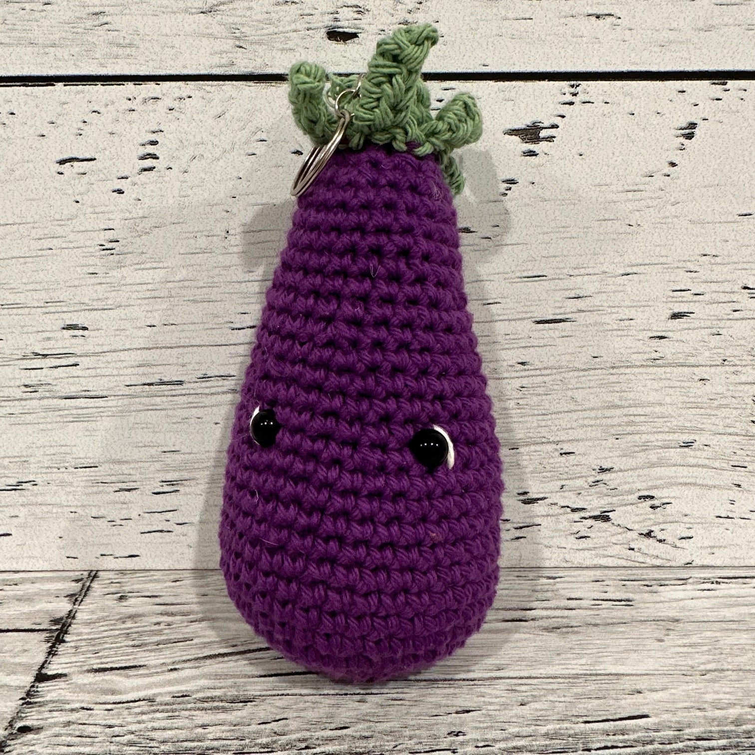 Brighten your day with this charming hand-crocheted eggplant keychain! Crafted with love, it keeps your keys organized while adding a playful touch. Perfect for gifts or a delightful treat for yourself! 🌱💜